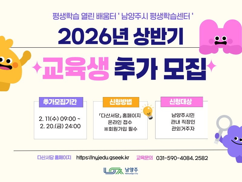 ▶문의 : 남양주시 다산평생학습과 인생다모작팀
