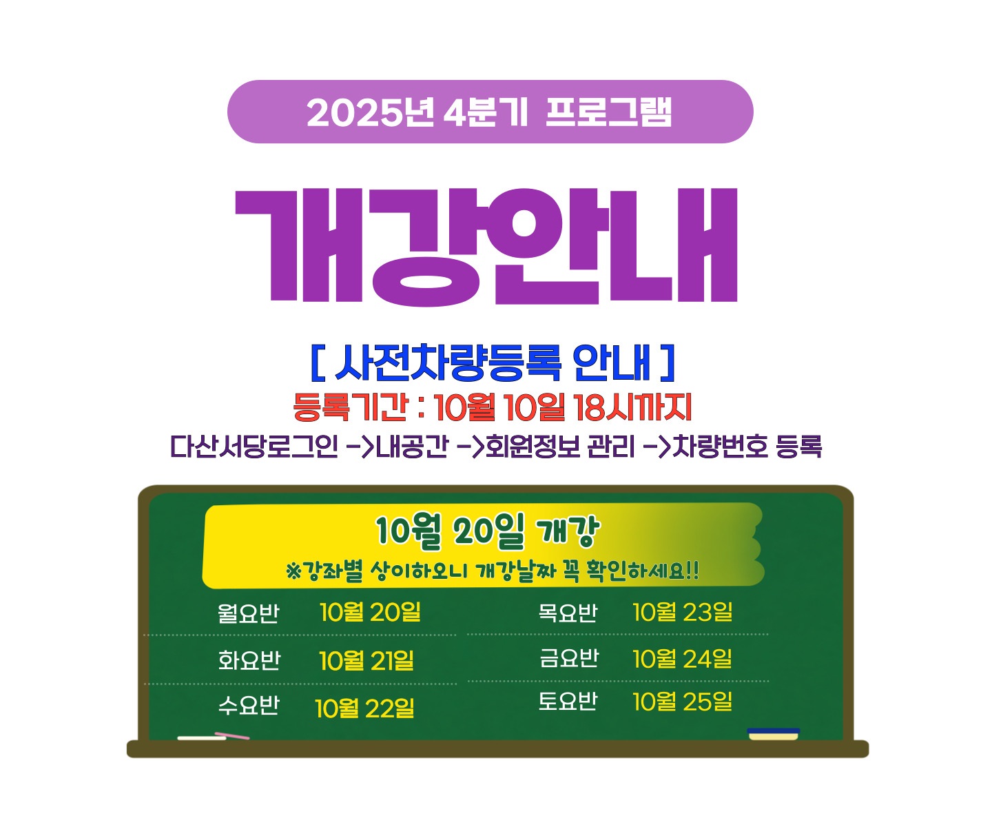 | 2025년 4분기 평생학습센터 프로그램 개강 안내 및 사전 차량등록 안내 |